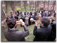 festival de trompetase Guca, un pueblo de 5mil habitantes en Serbia central a unos 150 km de Belgrado, goza de extrema popularidad en los Balcanes. Aquí, desde hace 45 años, cada agosto se organiza el Sabor Trubaca, un certamen para orquestas de metales. En este país, que en los últimos siglos tuvo que enfrentar varias guerras contra diferentes invasores, también las orquestas de metales tienen un origen militar. Históricamente, en estas tierras el ejército fue siempre formado por campesinos y, por ende, estrechamente ligado al pueblo. Cuando, a finales del siglo XIX, los soldados fueron desmovilizados llevaron sus metales a las orquestas de sus pueblos y allí empezaron a tocar con la gente. Serbia de hoy en día La República de las Trompetas presenta también algunos detalles sobre el momento que Serbia está viviendo. Mientras el país intentaba salir de la espiral de las trágicas guerras de los 90, desde los largos años de bloqueo internacional, al bombardeo de la OTAN, a la prolongada crisis económica, en marzo de 2003 ocurrió el último trágico acontecimiento: el asesinado del Premier Zoran Djindjic. Con la redacción de Radio B92, histórica emisora que se opuso al régimen de Milosevic, seguimos paso a paso el dramático evento y el impacto que tuvo en la población: dos meses después de la muerte del Primer Ministro todavía sigue la procesión incesante de los ciudadanos ante su tumba. Tras el largo ostracismo internacional parcialmente terminado con la caída de Milosevic en octubre de 2000, sólo ahora Europa Occidental está descubriendo Serbia y con extrema lentitud. Guca y la trompeta simbolizan de alguna manera la reacción a todas las adversidades que este país tuvo que afrontar. |